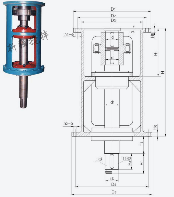 注:1、Ⅰ型為夾殼式聯軸器聯接