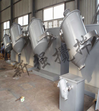 SYH系列三維運動混合機裝料的筒體在主動軸的帶動下,作周而復始的平移轉動和翻滾等復合運動,促使物料沿著筒體作環向、徑向和軸向的三向復合運動,從而實現多種物料的相互流動、擴散、集聚、參雜、達到均勻混合的目的。