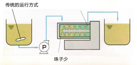 循環(huán)操作只需一個或兩個攪拌桶實現(xiàn)循環(huán)砂磨,而且攪拌桶內(nèi)粗顆粒會快速沉淀而優(yōu)科學入砂磨腔砂磨。